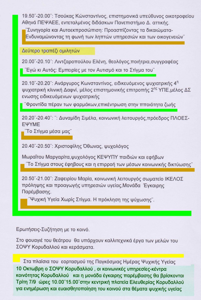 2. Εκδήλωση του Σ.Ο.Ψ.Υ Κορυδαλλού με τη συμμετοχή Επαγγελματιών από το χώρο της Ψυχικής Υγείας
