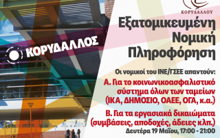 Ο Δήμος Κορυδαλλού συνεχίζει την επιτυχημένη συνεργασία του με το Ινστιτούτο Εργασίας της Γ.Σ.Ε.Ε, ανταποκρινόμενος στις ανάγκες σας & παραμένει αρωγός του πολίτη στην προστασία θεμελιωδών εργασιακών και ασφαλιστικών δικαιωμάτων. Τη Δευτέρα, 15 Δεκεμβρίου 2025, ώρες 17:00-21:00, θα διεξαχθεί η ...