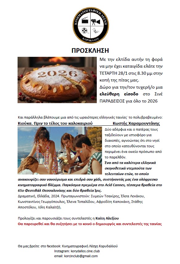 ΠΡΟΣΚΛΗΣΗ ΓΙΑ ΚΟΠΗ ΤΗΣ ΠΙΤΑΣ Anastasia Ouzounoglou2026-01-23T11:15:57+02:0023 Ιανουαρίου, 2026|Νέα| Κοινοποιήστε αυτήν την σελίδα facebooktwitterlinkedinEmail
