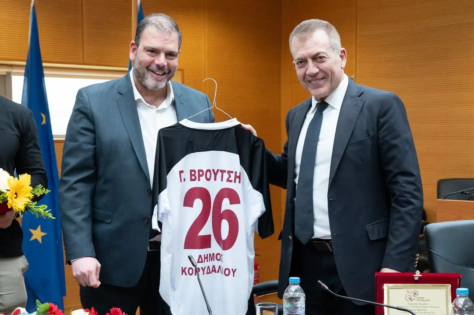 Ο Υπουργός Αθλητισμού κ. Ι. Βρούτσης, σε επίσκεψή του στο Δημαρχείο, συνοδευόμενος από τους Ολυμπιονίκες κ. Φανή Χαλκιά και κ. Θεόδωρο Τσελίδη ανακοίνωσε τη χρηματοδότηση ύψους 1.425,960€ για την αναβάθμιση των αθλητικών εγκαταστάσεων του Δήμου Κορυδαλλού .
