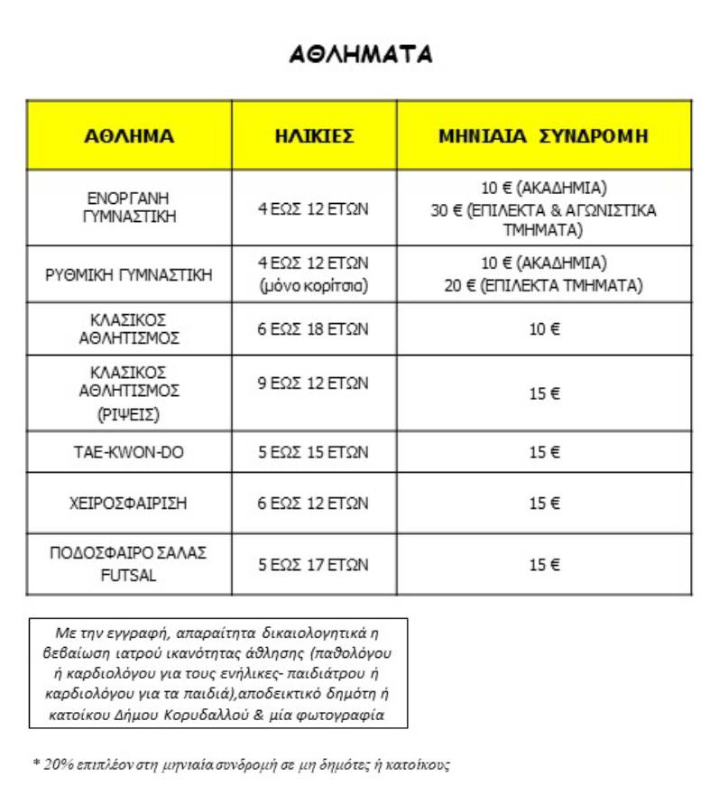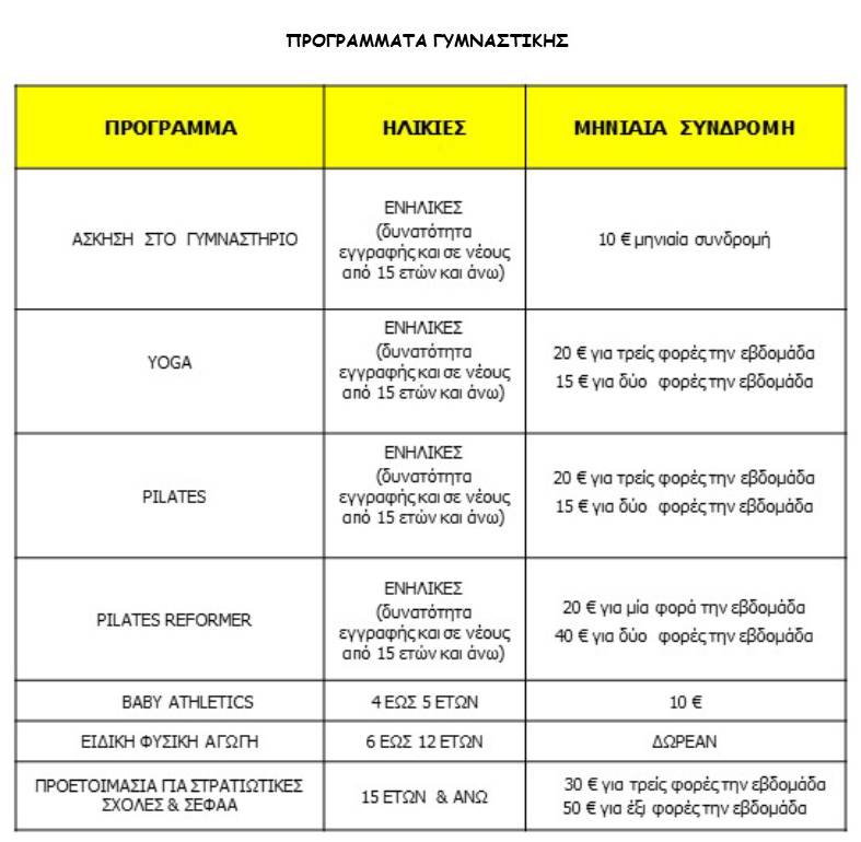 ΑΘΛΗΤΙΚΑ ΠΡΟΓΡΑΜΜΑΤΑ ΤΟΥ ΔΗΜΟΥ