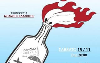 Το Σάββατο 15/11 θα έχουμε τη χαρά να παρακολουθήσουμε τη θεατρική παράσταση "Βότκα Μολότοφ" από την Θεατρική Ομάδα Δήμου Κορυδαλλού στο Πνευματικό Κέντρο Κορυδαλλού Μελίνα Μερκούρη στις 20:00. Σας περιμένουμε.