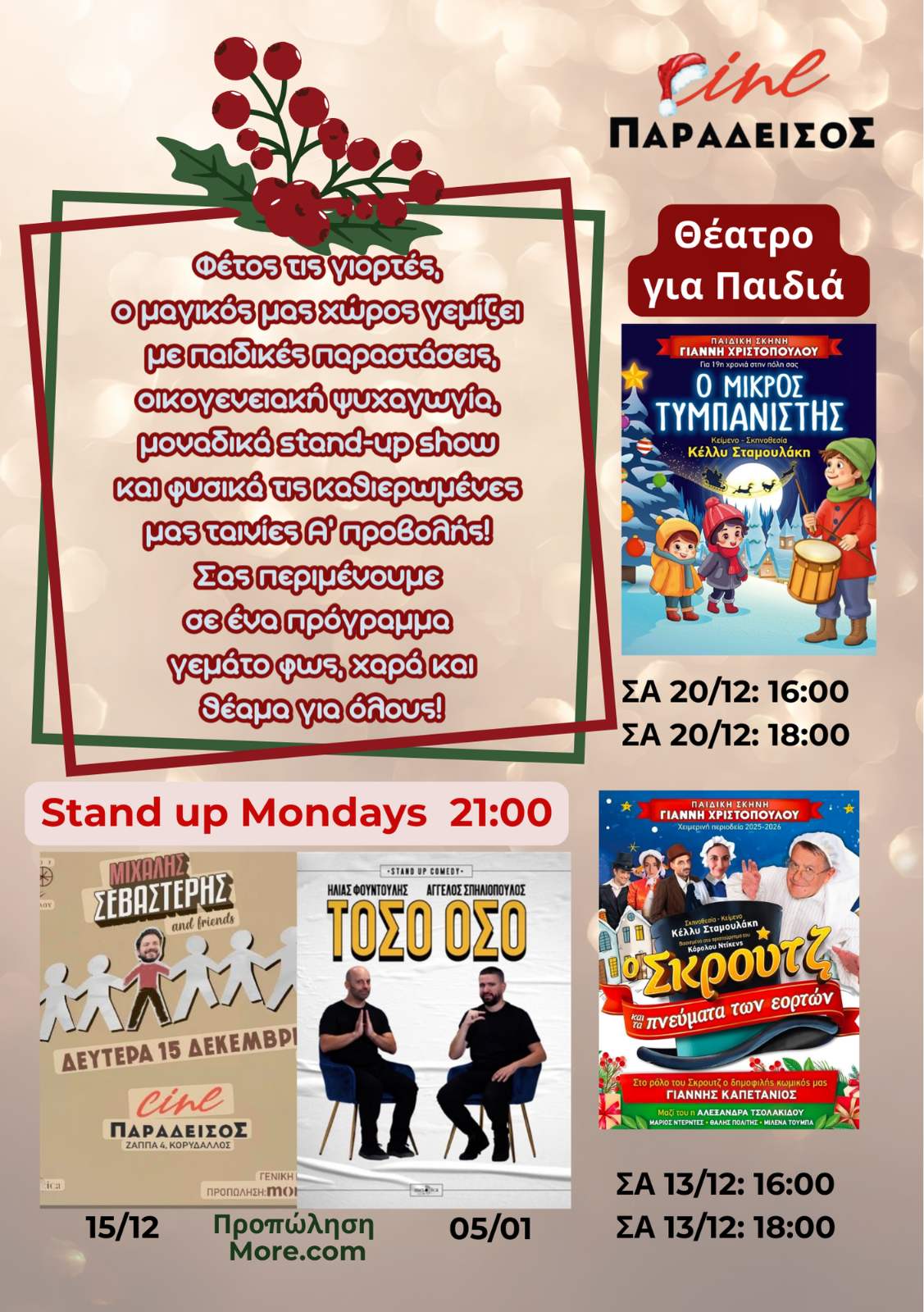 🎄✨ Το πιο γιορτινό πρόγραμμα στο Cine Παράδεισος ! ✨🎄