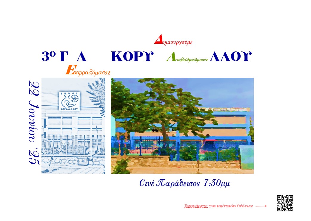 Σας προσκαλούμε σε μια ξεχωριστή εκδήλωση στο Σινέ Παράδεισος (χειμερινή αίθουσα) — με αφιερώματα, προβολές, δημιουργίες των μαθητών μας και μια γιορτινή ατμόσφαιρα λίγο πριν τη λήξη της σχολικής χρονιάς!